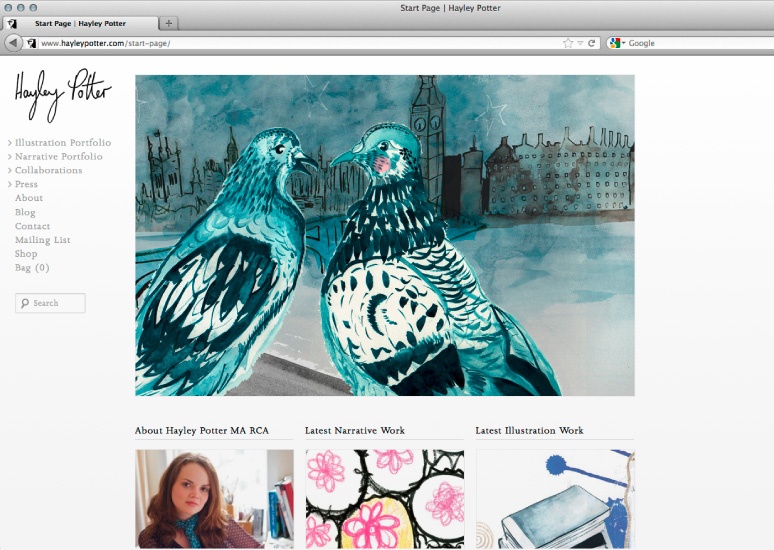 Project Information: Create a website showcasing the work, collaborations and exhibitions of illustrator Hayley Potter. Target the website at agents and publishers. The site also needs an online shop where people can buy books, prints and original drawings direct from Hayley.